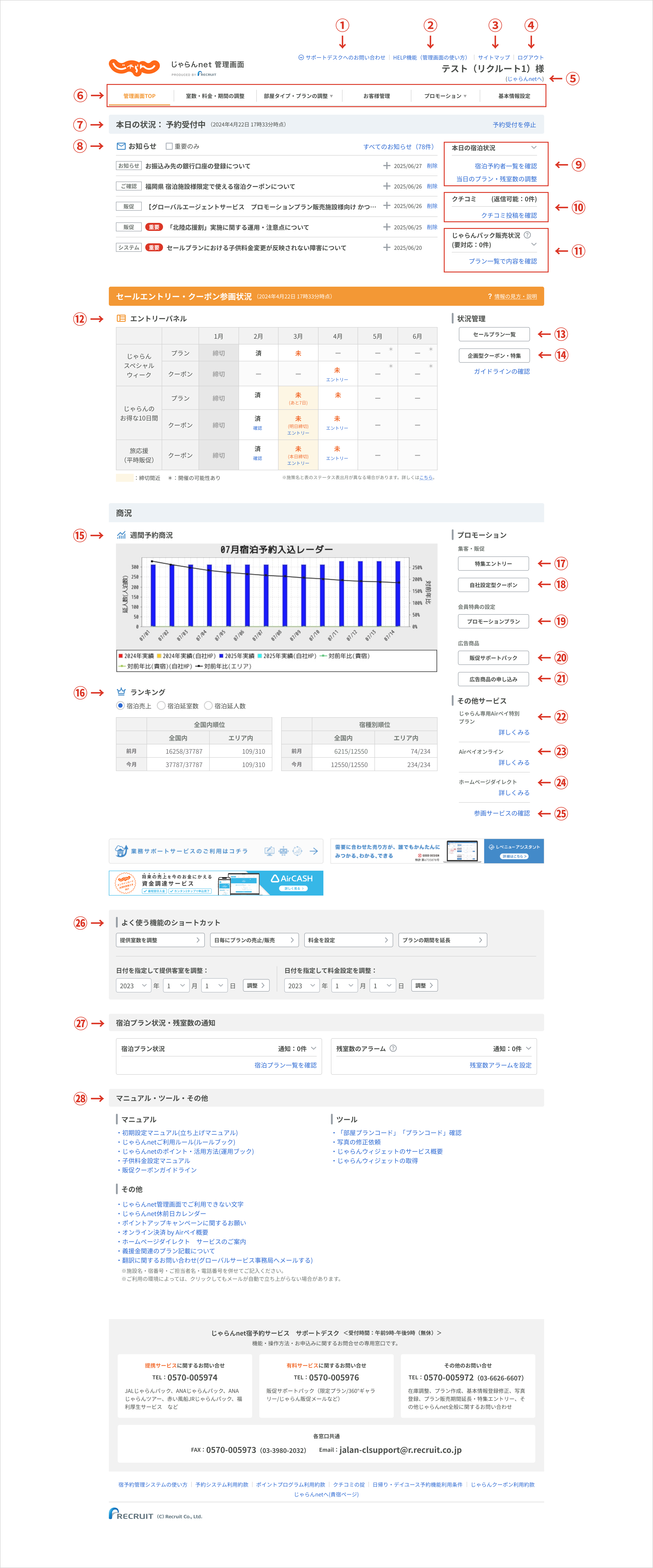 じゃらんnet管理画面にログインすると、管理画面TOPページが表示されます。